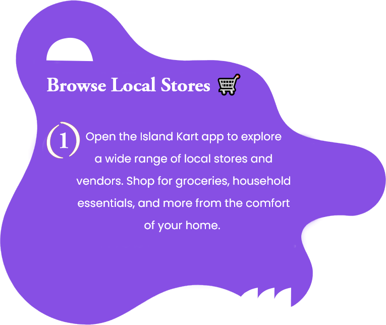 “Ready to shop? Simply browse our selection of local stores and products, add your items to your cart, and check out with just a few taps. Whether it’s groceries, household essentials, or local favorites, your Island Kart agent will be on their way to bring your order right to your door. Convenient shopping, made easy!”